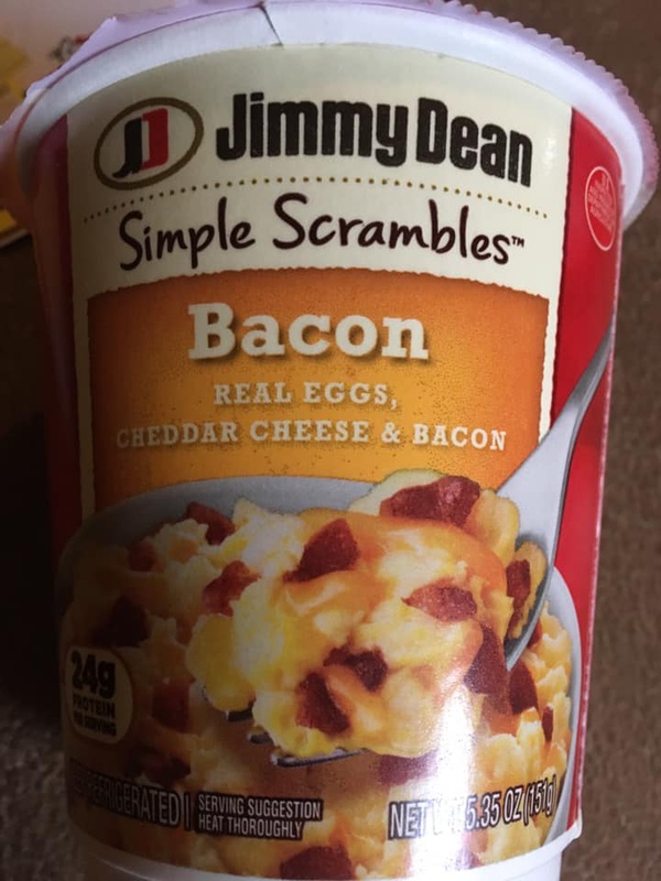 Jimmy Dean Simple Scrambles Quick Breakfast Cup, Bacon, 5 ... - Walmart.com Made with two real eggs, bacon, and cheddar cheese, our Simple Scrambles are packed with 23 grams of protein per serving for a hearty breakfast that's ready in seconds. Simply combine, heat, and eat for a fresh made breakfast at home or on-the-go. Includes one 5.35 oz. microwave-safe cup. Jimmy Dean once said, "Sausage is a great deal like life.