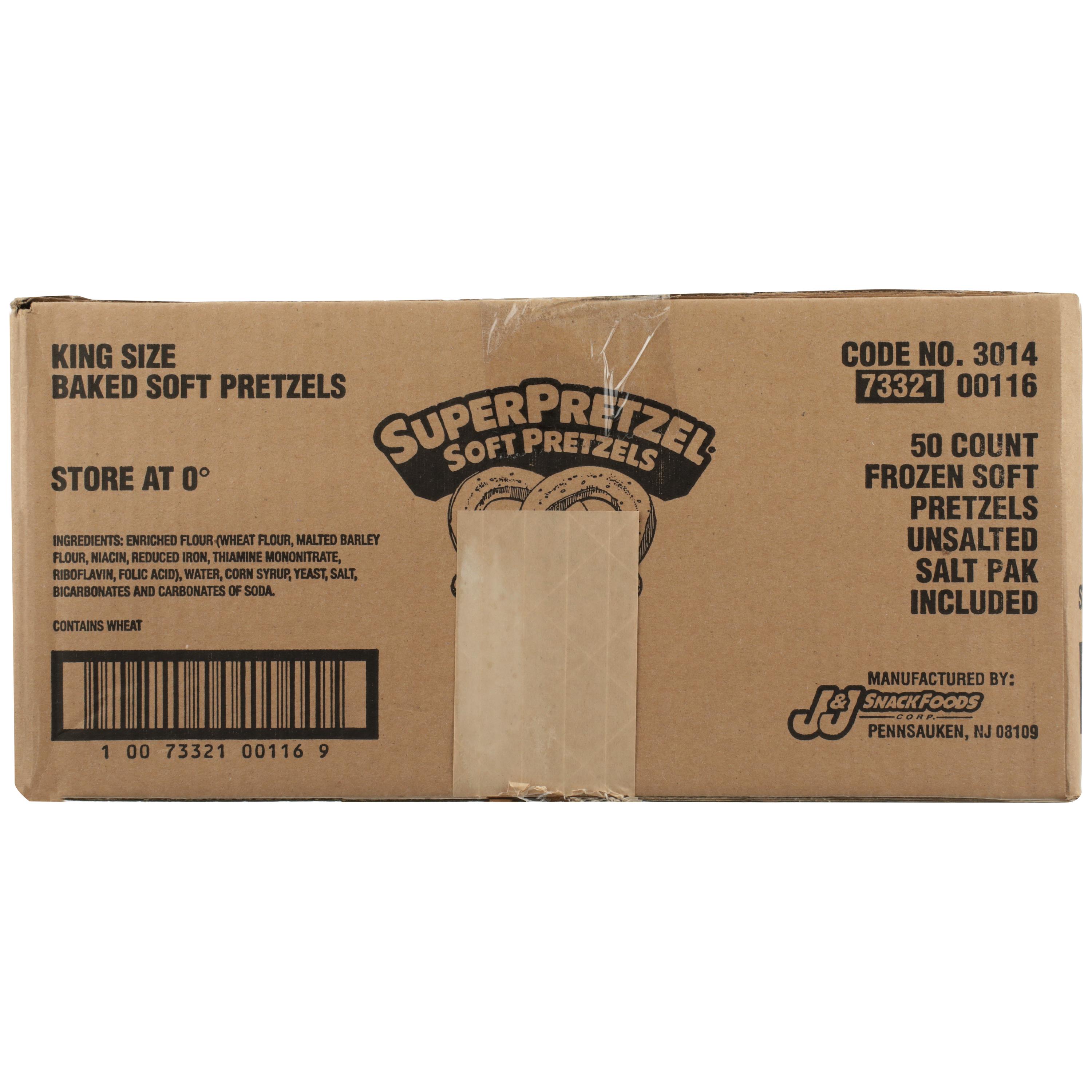 SuperPretzel King Size Baked Soft Pretzel - BJs WholeSale Club From game time to snack time, these King Size Soft Pretzels are a classic baked snack that fit any occasion. Plain, with cheese, or with any other delectable topping you can think of, they always hit a home run without serving up any preservatives, trans fats or cholesterol. Product Features: Perfect for any occasion