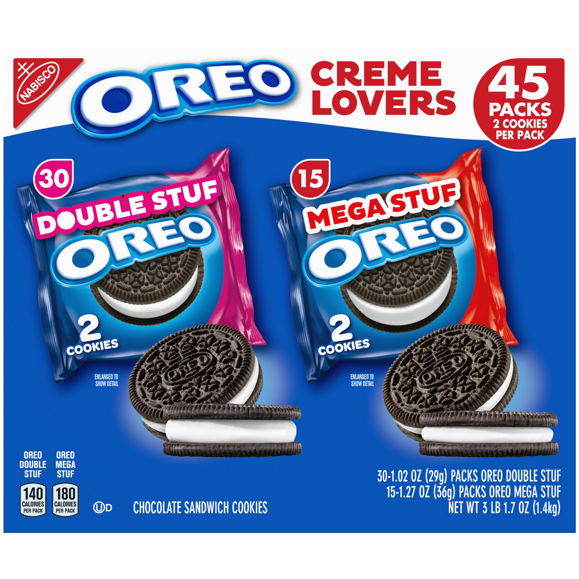 OREO Mega Stuf Chocolate Sandwich Cookies, 13.2 oz - Walmart.com One 13.2 oz package of OREO Mega Stuf Chocolate Sandwich Cookies; OREO chocolate sandwich cookies are stuffed with 3x more OREO creme; Sandwich cookies are perfectly dunkable cookies for kids and adults; Bulk cookies perfect for birthday treats, after school cookies or a sweet snack food any day of the week; Kosher snack foods always made with ...