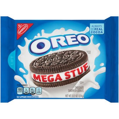 Nabisco Oreo Chocolate Mega Stuf Sandwich Cookies Take a delicious break with Oreo Mega Stuf Chocolate Cookies, a new way to enjoy the favorite of millions around the world since 1912. Supremely dunkable, Oreo Mega Stuf Cookies sandwich a colossal helping of creme filling between the bold taste of two chocolate wafers--making them milk's favorite cookie. The resealable pack with easy-pull tab ...