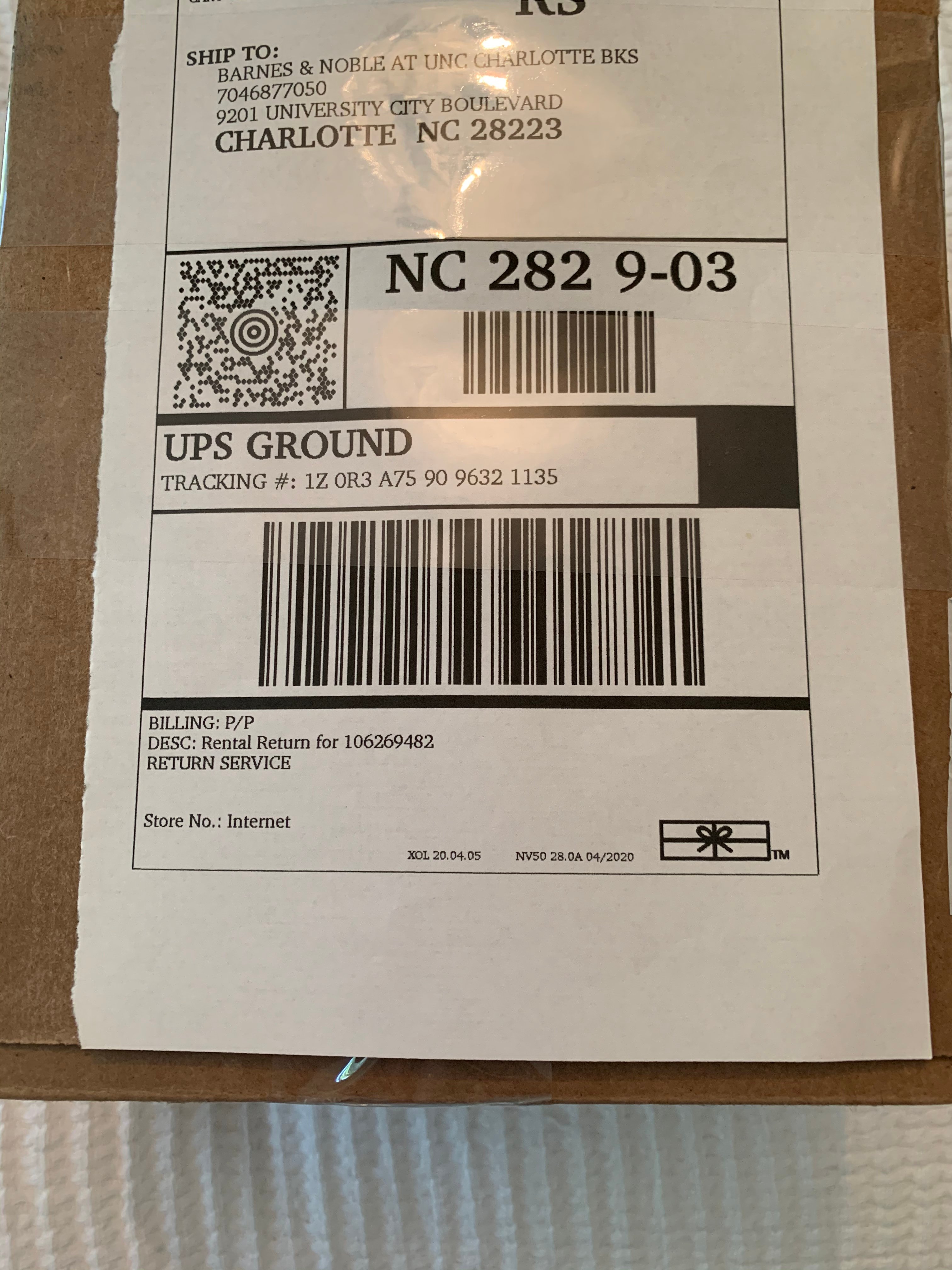 Barnes and noble rental return label