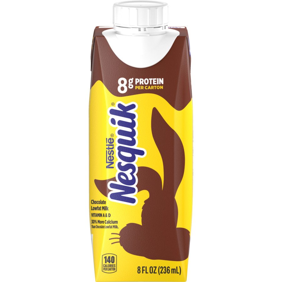 Nesquik Low Fat Chocolate Milk - 14 Fl Oz : Target This Nesquik chocolate lowfat milk comes in a convenient resealable bottle. Containing 14 grams of protein per serving from 100% real milk, and Vitamin A and Vitamin D, this Nesquik chocolate lowfat milk also offers 30% more calcium than regular chocolate low fat milk. Shake well before enjoying, and keep refrigerated after opening.