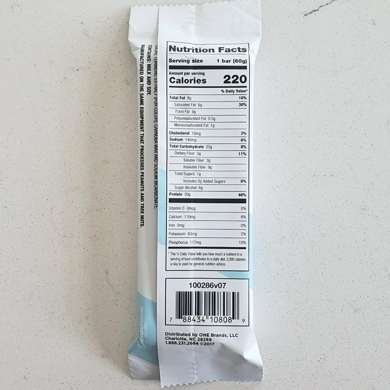 One bar nutrition label