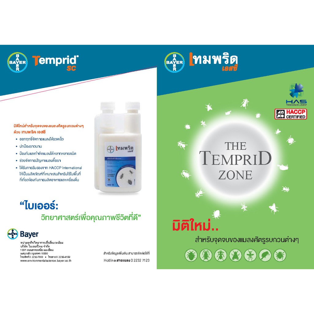 Temprid75 Insecticide - Bayer Temprid75 is a general insecticide that will control most insect pests. It is a suspension concentrate that offers a unique dual mode of action by combining two powerful and effective residual insecticides: beta-cyfluthrin and imidacloprid to deliver greater control. Pack sizes: 1 L & 5 L. Product Description Downloads HACCP Certificate (1 MB)